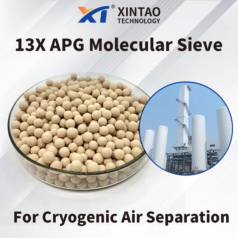 XINTAO 13X APG Molecular Sieve is specially engineered for the co-adsorption of CO₂ and H₂O in cryogenic air separation plants. It offers larger adsorption capacity and faster adsorption kinetics, effectively preventing bed icing. It is suitable for all scales and types of air separation units worldwide.