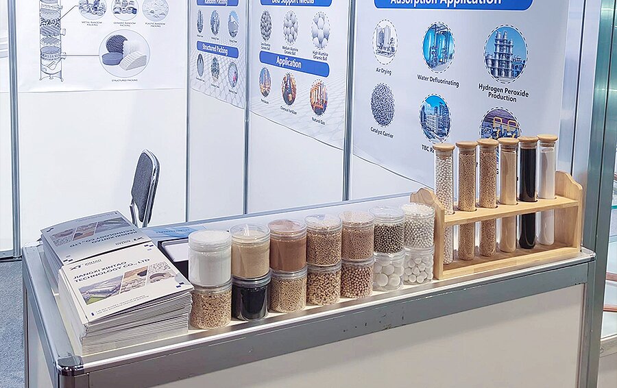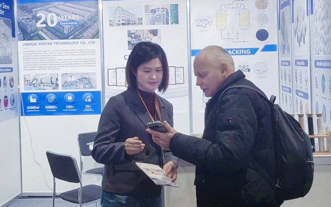 Take natural gas drying and purification using molecular sieves as an example. natural gas often contains acidic components such as H₂S and CO₂, as well as small amounts of heavy hydrocarbons. With the right loading of 13X molecular sieve, it is possible to remove sulfur, carbon dioxide, and water simultaneously, greatly simplifying the purification process and reducing operating costs. Xintao can customize exclusive adsorption solutions based on customers’ natural gas composition analysis reports. Simultaneously, it can provide free samples for customer verification through on-site testing, greatly reducing the decision-making risks of cross-border procurement, becoming one of the most praised highlights of its booth.
