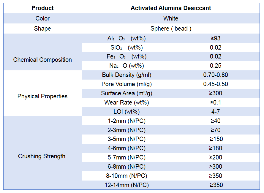 Xintao activated alumina is a white, spherical, porous particle with a uniform particle size, a smooth surface, and an extremely high specific surface area. It can serve as an adsorbent, desiccant, and catalyst carrier. It has a strong affinity for polar substances such as water molecules, oxides, acids, and bases, and boasts a high adsorption capacity, high strength, and low wear. And it is non-toxic, odorless, and insoluble in water and ethanol, does not expand or rupture after absorbing water, maintaining excellent particle integrity and ensuring long-term stable use.