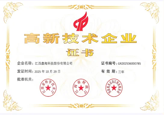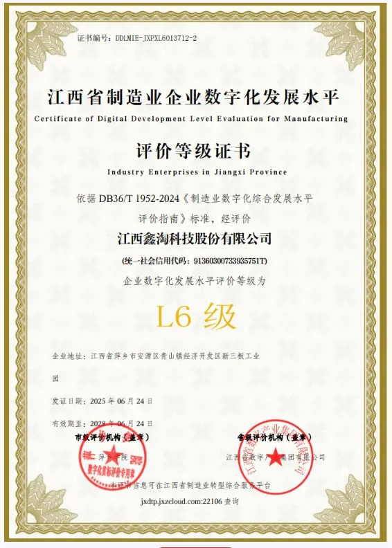 Looking back on this journey, we are grateful for the trust and companionship of our customers and partners. We not only successfully obtained High-Tech Enterprise certification, making technology the standard, and won the “Green Manufacturing” certification from Jiangxi Province and Pingxiang City, and were recognized as a specialized and innovative SME in Jiangxi Province, but also passed energy management system certification. Furthermore, we achieved authoritative recognition in digital transformation, obtaining L6 and 2-star certifications, and continued to lead in online sales and corporate credit. Every honor is the foundation for Xintao’s unwavering progress.